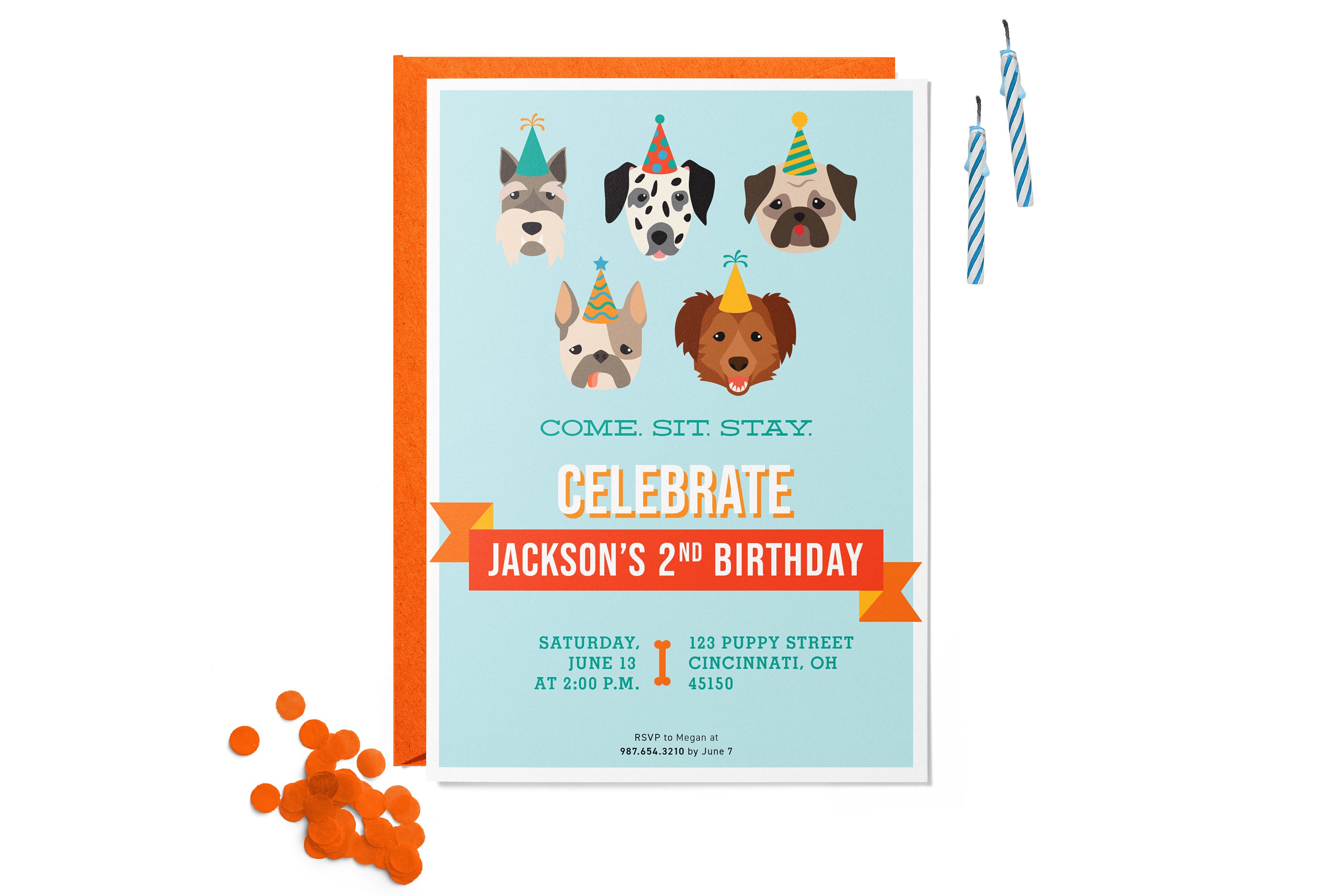 Celebrate with furry friends using this Puppy birthday invitation — a playful design for dog-loving kids.