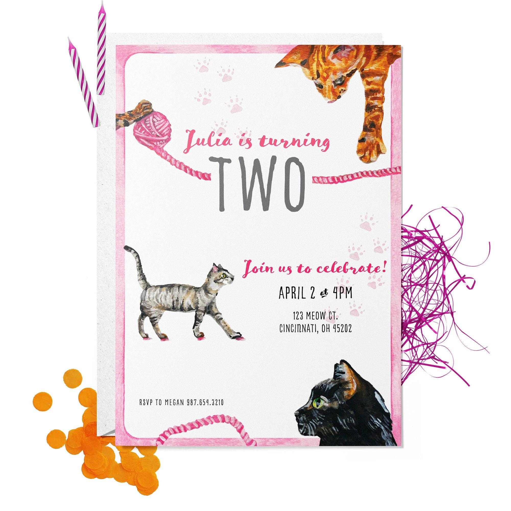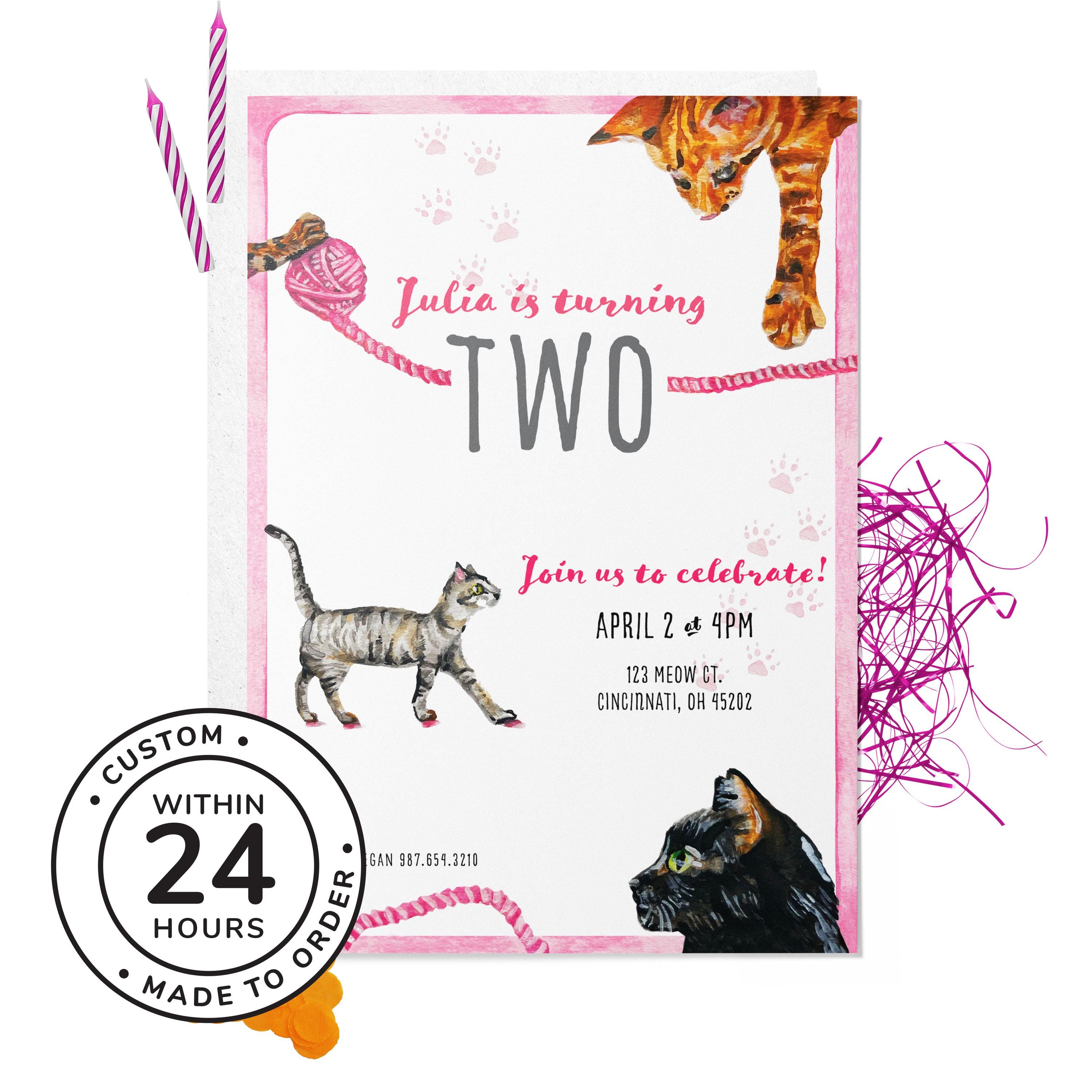Celebrate in purr-fect style with this watercolor Cat birthday invitation — a hand-painted design made for kids who love kittens and furry friends.