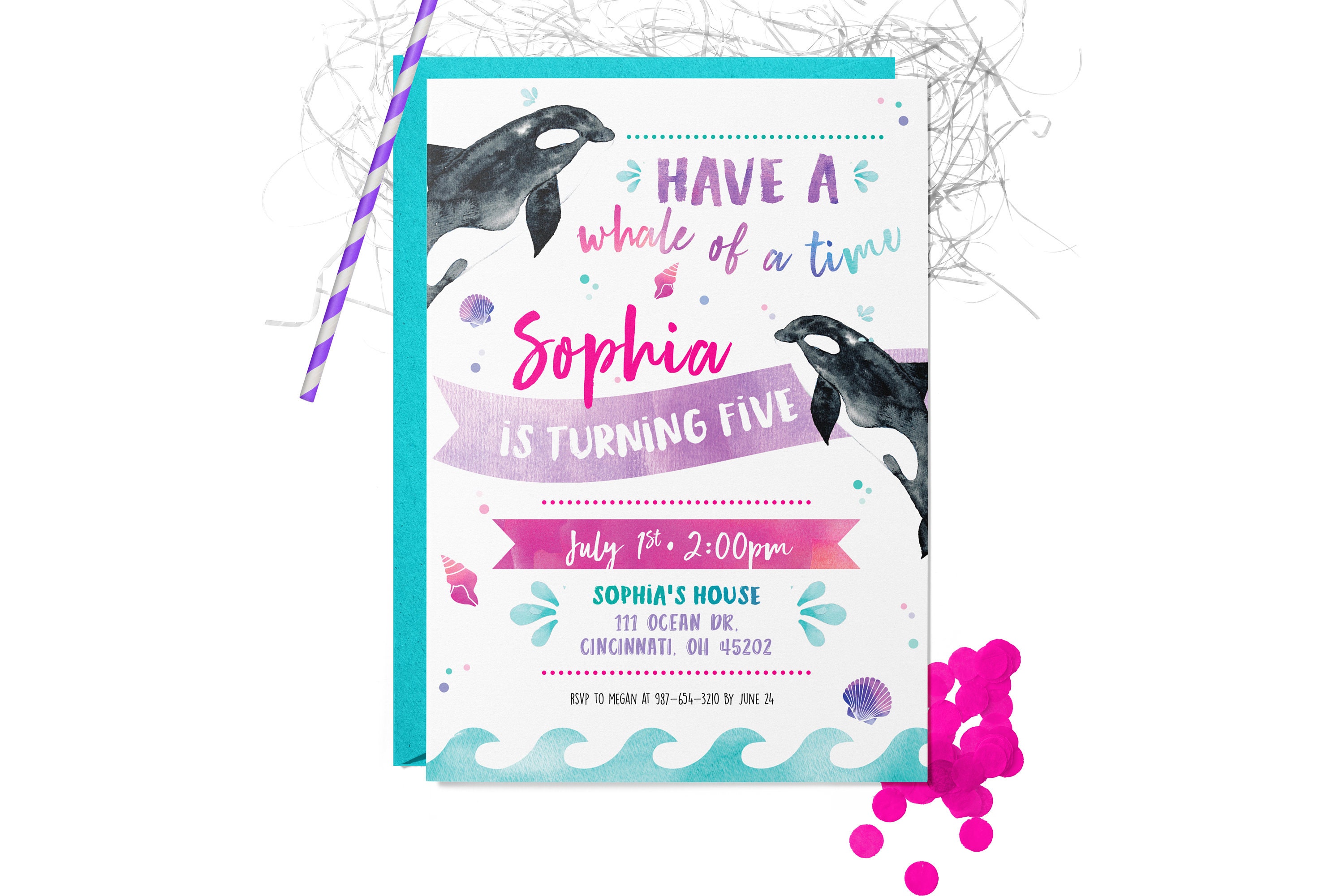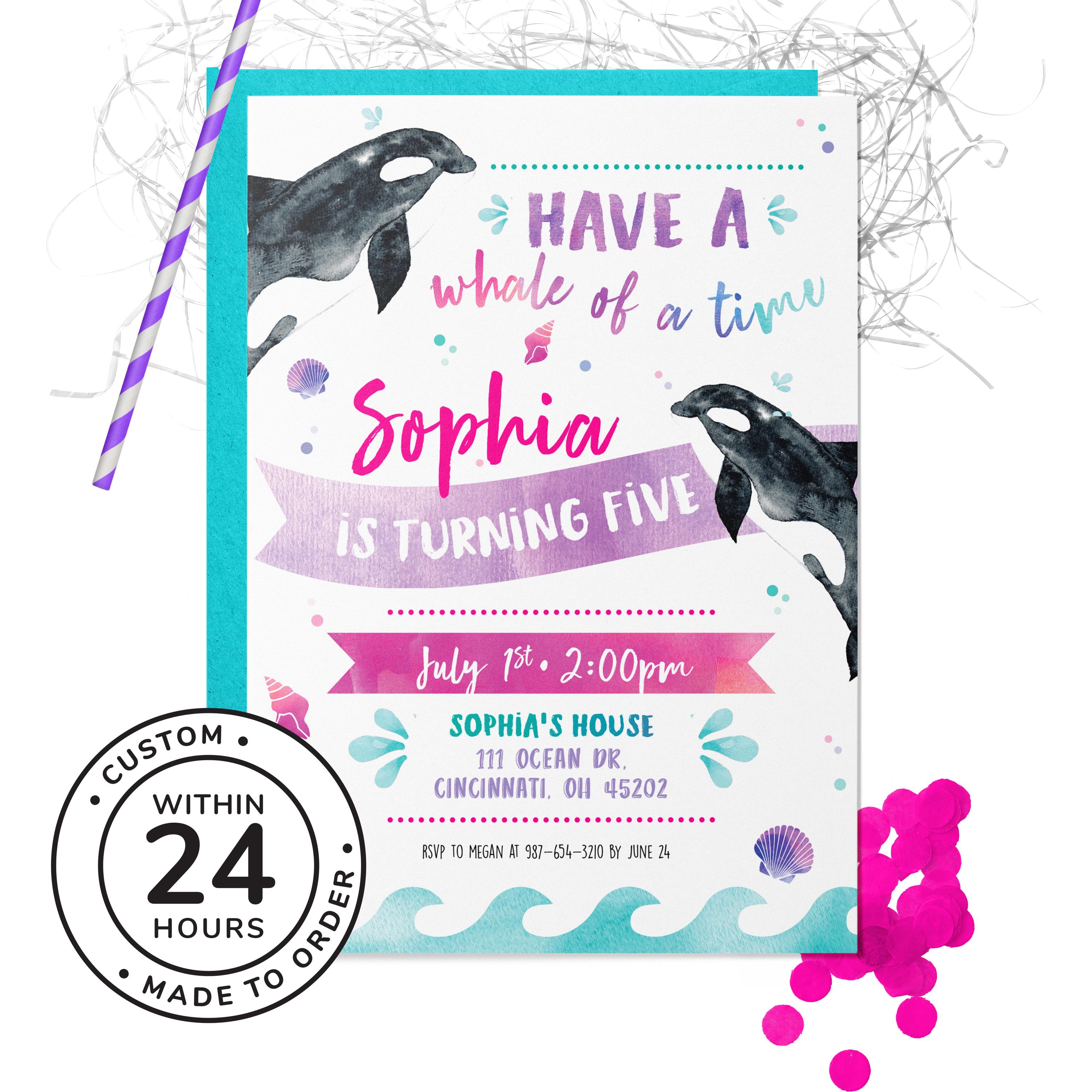 Make a splash with this Whale birthday invitation — a nautical design perfect for ocean-loving kids.