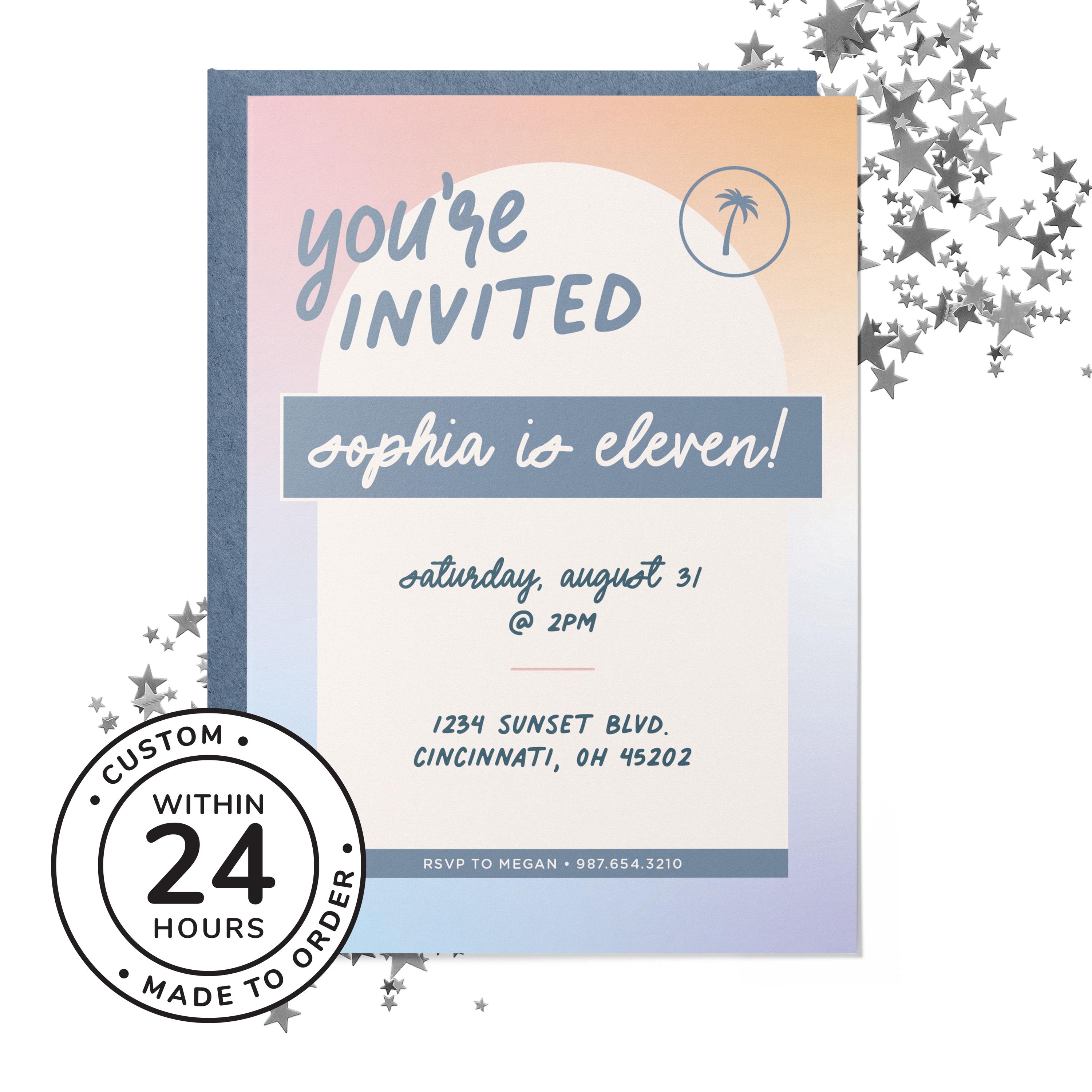 Set the tone for a relaxed celebration with this Sunset Palm Tree birthday invitation — a minimalist tropical design perfect for summer birthdays.