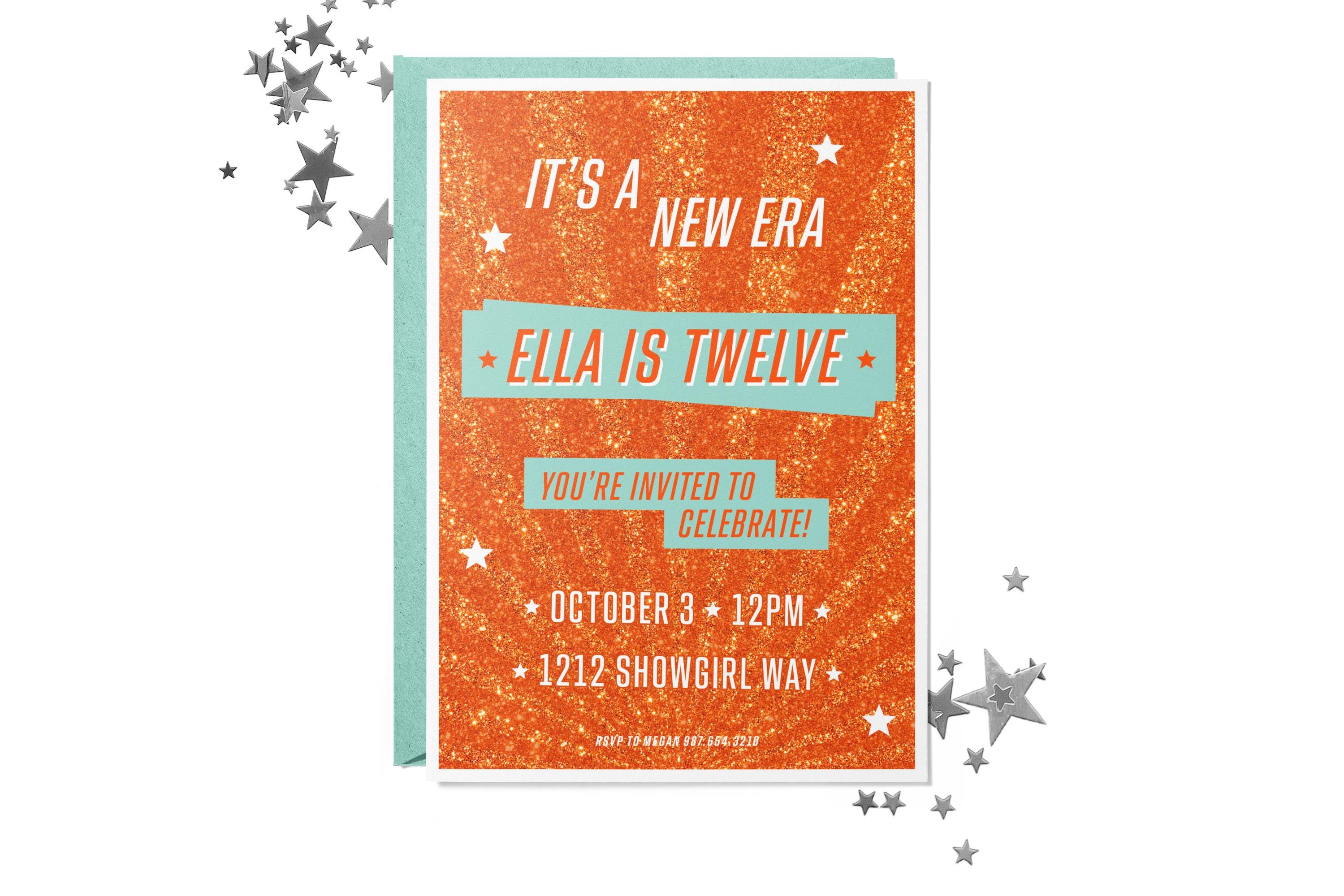 Make it a night to remember with this Taylor Swift-inspired “The Life of a Showgirl” birthday invitation — a glittery, glamorous design for a bold celebration.