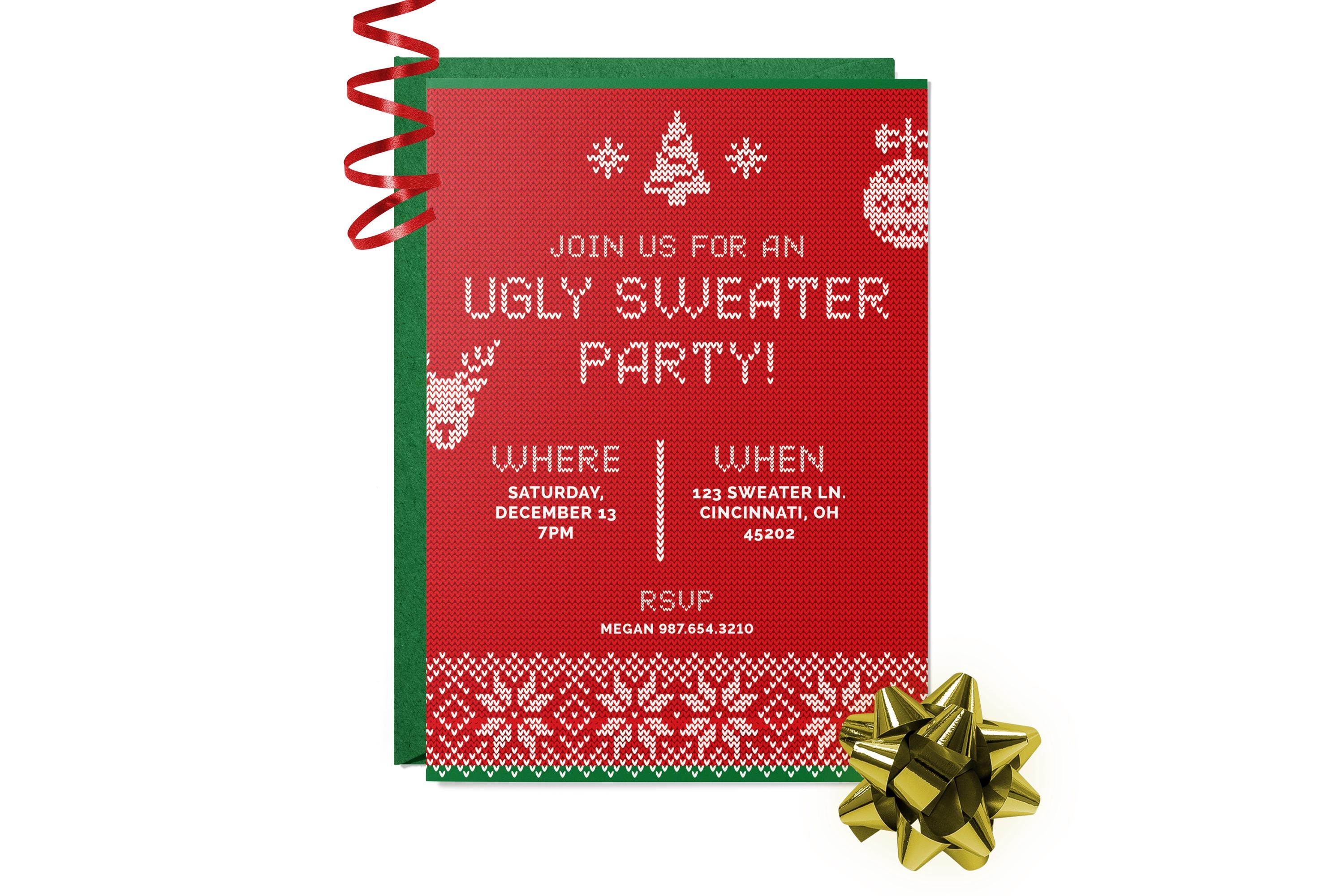 This festive red-and-white knit style invitation is perfect for holiday get-togethers, office parties or family Christmas celebrations. The cozy sweater design brings an instant nostalgia and fun to your event.